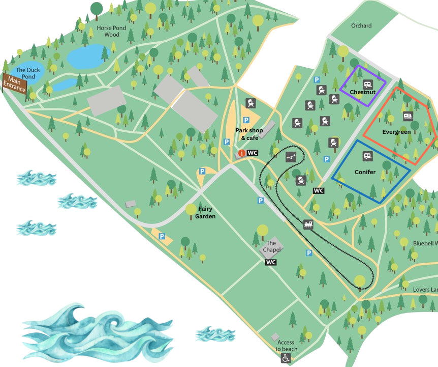 Site access details:- SO45 1AE. Turn L B3053. Follow signs to Exbury Gardens,,go past gardens on right to junction for village but continue straight ahead(don’t turn left) Inchmery lane, approx 1.0 mile site on R gravel drive.